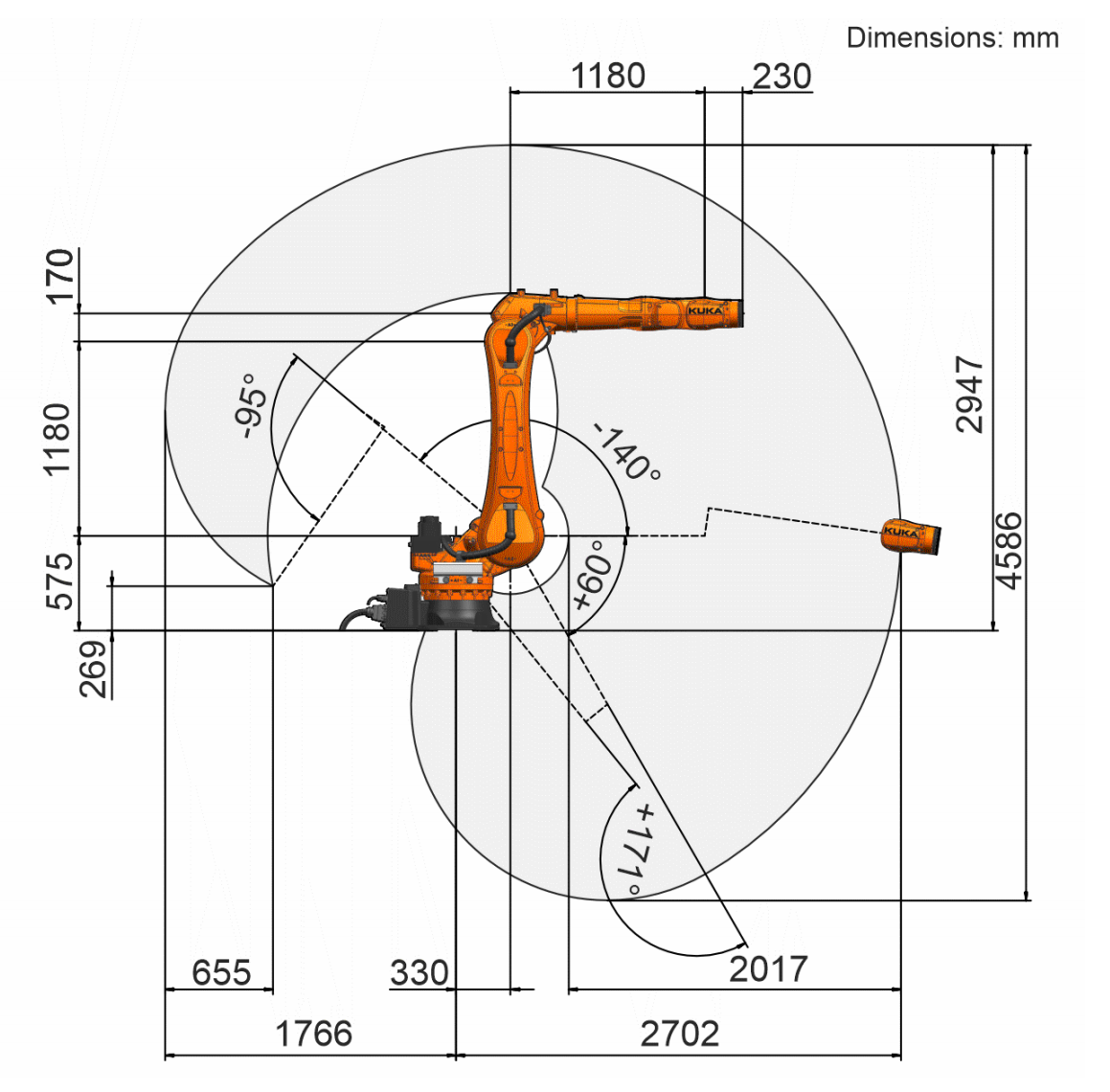 KR IONTEC 超级版的尺寸比目前的 QUANTEC 小了 40%。 通过采用 10% 更窄的干涉轮廓、取消平衡控制系统(CBS)以及优化尺寸范围比例,IONTEC 超级机型能够完美适配小型电池组。  通过减少基站占地面积实现成本节约。